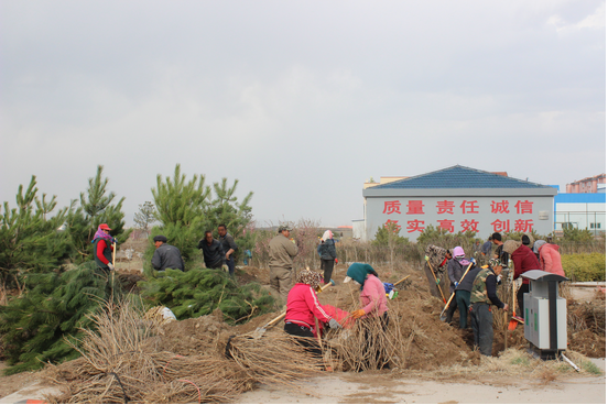 植樹現(xiàn)場,整地、挖坑、栽植、鏟土,處處都是忙碌的身影,呈現(xiàn)出一派火熱繁忙景象。一番緊張的勞動后,一株株樹苗傲然挺立,園區(qū)頓顯盎然生機。